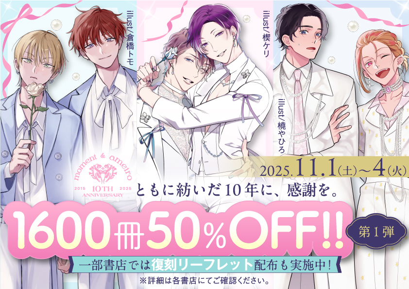 moment&アメイロ10周年フェアとして、第1弾・第2弾合計で1600冊が50%OFFになる大型セールを実施中です!